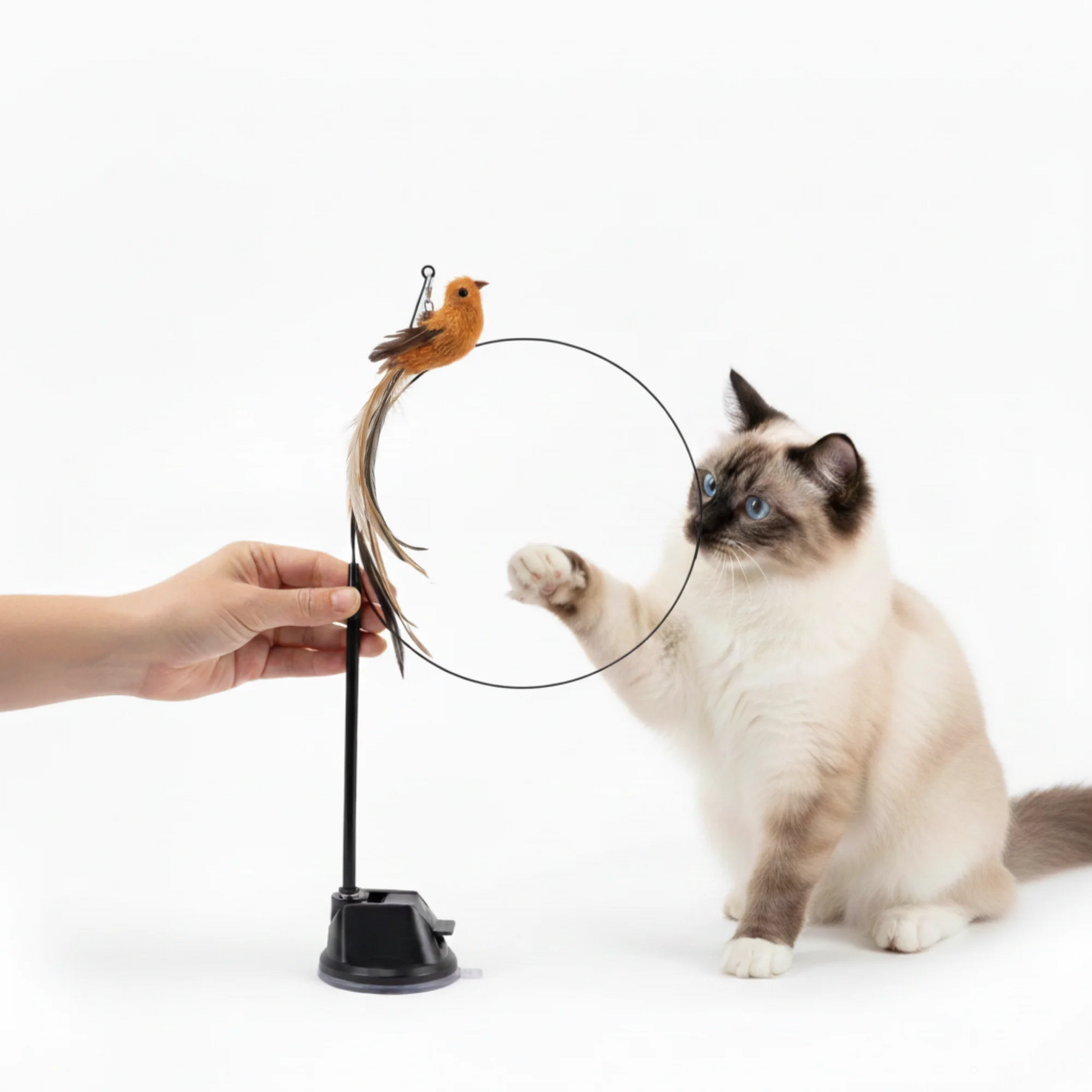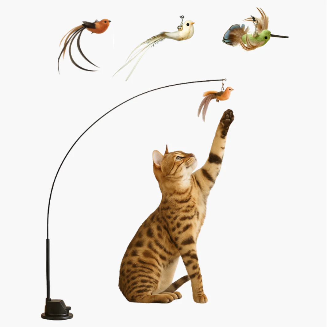 Med sin flexibla stång och hängande leksaker i form av fåglar reproducerar denna leksak realistiska rörelser som omedelbart fångar uppmärksamheten. Fjädrarna, texturerna och svängningarna utlöser en instinktiv jaktinstinkt, vilket gör varje leksession spännande och annorlunda än den föregående.